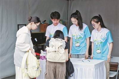 这些年,志愿者团队中的绝大多数成员是杭州各所高校的大学生。今年来做志愿者的是浙江工商大学的同学们,学生领队是读英语专业的万怡鑫。这位山东姑娘虽然才读大一,但志愿者经历不少,去年还参加过世界知识产权大会的志愿服务。