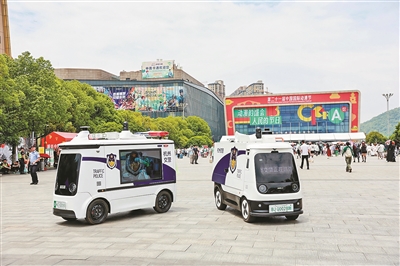 “我们同事将巡逻路线设定好后,它就会自己上路巡逻,我们可以在后台实时看到路上的情况。”张皖浙说,这款无人车的用途多样,既能帮助交警巡逻,也能装运锥桶辅助道路管理。