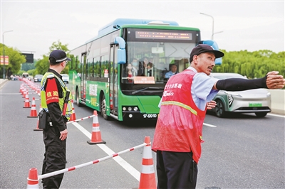 根据往年经验,交警部门会提前对场馆附近多个重点路段进行布置。比如张皖浙所在的白马湖路江虹路口,每天都会有十余名警力轮流执勤。“从这个路口进入场馆的车流量、人流量都非常大,我们两边都得兼顾。”张皖浙说,每天一大早同事们就会到岗准备,一天的工作结束后还要复盘,继续完善第二天的工作。