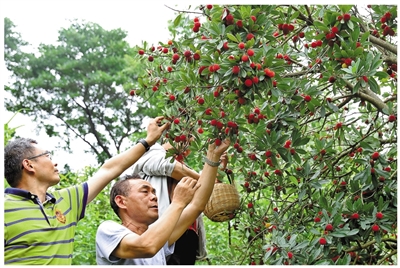 所前镇是著名的“茶果之乡”,据史料记载,该镇从唐朝开始就有沿山十八村种植茶叶和水果,其中以杨梅最负盛名。目前全镇杨梅种植面积近7000亩,几乎家家户户都有杨梅树,每年的梅雨季,也正是杨梅的成熟采摘季。通讯员 张祥荣 摄 记者 李忠 文