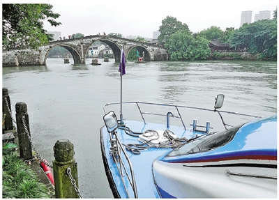 6月10日,运河杭州段的水上公交船及观光游船从8时许全线暂停营运。记者 李忠 摄