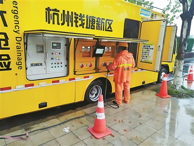钱塘 抢险车蹲守考点 抽排积水超5000立方米