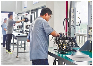 杭州交投船闸技能实训室内,相关人员在进行实操训练。 杭州交投船闸管理有限公司供图