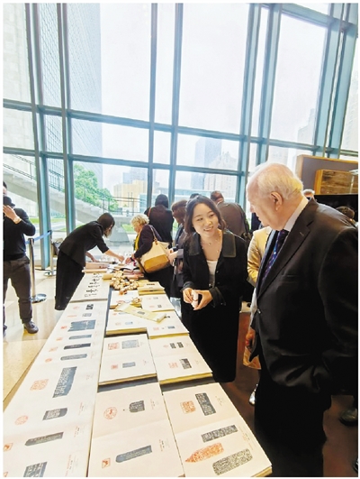 当地时间6月9日,在庆祝“文明对话国际日”之际,由浙江省人民政府新闻办公室与西泠印社策划的“文明互鉴·世界愿景”图形印展在联合国总部展出。中国常驻联合国代表傅聪、联合国副秘书长莫拉蒂诺斯等中外嘉宾共同见证这场文化盛事。