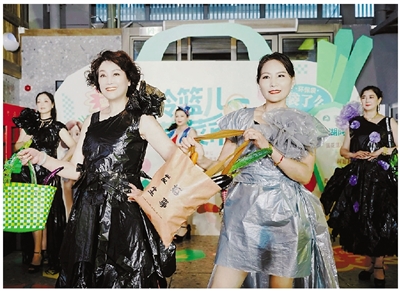 本报讯(记者 黄冉 西湖微融圈 林常青 何之洲)废弃的编织袋化身时尚衣裙、不起眼的水果网套变身精巧手镯——近日,一场别开生面的“环保风采大秀”在“网红菜场”文二菜市惊艳登场。“西湖阿姐”们踩着自信的步伐,身披精心改造的“回收材料”战袍,挎着原创环保袋,将寻常废弃物变成独一无二的“艺术品”,赢得现场掌声与欢呼。