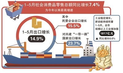 本报讯(记者 敖煜华)日前,杭州市统计局发布全市1-5月经济发展数据,在复杂的国际环境和转型压力下,最新出炉的经济数据展示了杭州经济强劲的脉搏——既稳得住,又迸发新活力。消费政策稳步推进需求回升,出口突围验证开放路径有效,工业稳健支撑基本面,新质生产力的迅速起势更暗示着未来转型的动能所在。