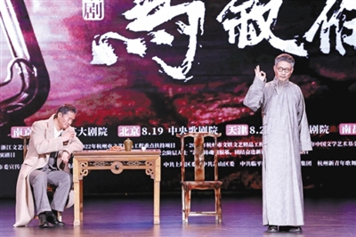 饰演老年马叙伦的魏鹏分享了他的创作心得。对他来说,最大的挑战是如何实现与剧中人物精神层面的契合。通过反复研读关于马老的图文资料,不断与主创团队研讨,他渐渐找到了感觉。有一次演出,在喊出“万水朝东”那句台词时,突然,他感受到与人物的精神连接,“当时起了一身鸡皮疙瘩”。