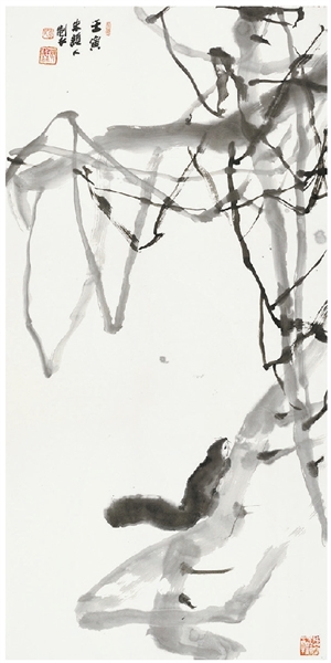 朱颖人艺术成就斐然,他继承吴茀之先生丰润灵动、古意盎然的气韵,汲取潘天寿先生“强其骨”的笔墨精神,一生致力于花鸟画研究。其为人坦荡、温文尔雅,画作亦如其人。从1981年的《水墨松鼠》、1986年的《香雪海》,到2022年的《一条线水墨组画》等,这些经典之作植根生活、亲近自然,既营造出高逸深远的意境,又深入挖掘精神内涵,对当代花鸟画发展影响深远,为中国画大写意创作繁荣作出卓越贡献。