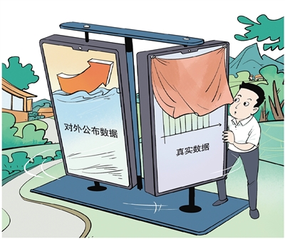 乡村旅游人次数据,一套是真实的,一套是对外发布的;土地流转费从村集体走账,算作村集体经济收入;为应付畜禽粪污资源化利用率达标考核,虚报数据……新华社半月谈记者在基层调研发现,部分地方在推进乡村振兴过程中,出现“数据交差”苗头,把数据达标等同于工作完成,滋生诸多数据“掺水”乱象。漫画 勾犇