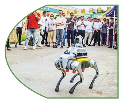 走进江山市峰田家庭农场的百亩稻田里,一只智能巡检机器狗引起了记者的关注。它不需要人工操控就能在田埂间灵活穿梭,自动避障,实时扫描作物长势、分析病虫害、采集气象数据,通过5G网络将农田信息传回云端,成为农田里的得力助手。“我们正和相关科研团队开展进一步研究,让机器狗在丘陵山地果园具备同样出色的地形适应能力,可对果树进行近距离巡检,获取树木健康状况、果实发育情况等信息,便于管理。”浙江托普云农科技股份有限公司市场部负责人杨莉介绍。