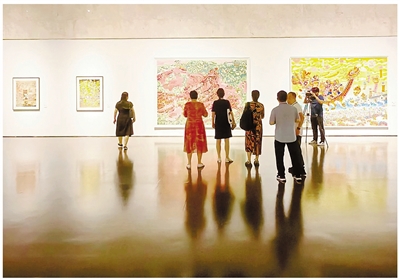 在首届中国乡土绘画(农民画)展览现场,展厅入口处的“金山如画”文创展厅同样留住了很多人的脚步。金山农民画早在20世纪80年代就已赴17国展出2700余幅作品,目前其已开发多种文创产品,这是从地方展览到国际表达的“跃升”过程。期待湘湖畔的“中华第一舟”,未来有更多的创造性转化。
