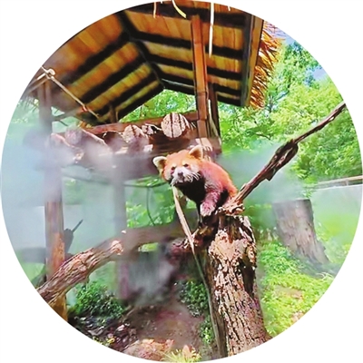 在小熊猫馆,动物园为怕热的它们开启了空调。