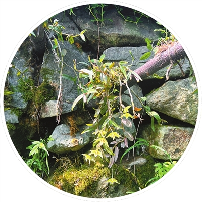 更令人惊叹的是那些倔强生长于堡坎石缝间的石斛。这也是夫妻俩这两年的新探索。