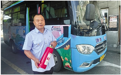 袁竹良今年55岁,去年9月进入桐庐潇洒公交公司,他说入职培训的课上就进行了灭火器操作演习,每个月公司都会进行安全培训。“灭火器操作演习了好多次,但碰到实际情况操作还是第一次。”袁竹良说,由于日常练习比较熟练,所以他一点也不慌,按日常的操作完成。当货车司机拉着他的手不住感激他时,他笑笑说:“人没事就好。”