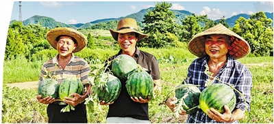 回山镇平均海拔412米,高峻的地势、湿润的气候和显著的昼夜温差,孕育了皮薄肉脆、甘甜多汁的“回山云端瓜”。7月24日下午,为推动高山西瓜、高山蔬菜等特色农产品走出大山,回山镇举办了“有缘新昌·四季乡聚”之回山西瓜奔富季活动,通过文旅融合、数字赋能、跨域合作等模式,助力农民增收,绘就共同富裕新图景。