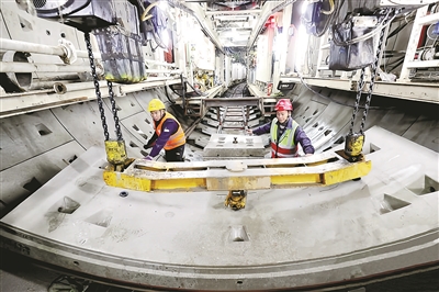 本报讯(记者 沈晓颜 通讯员 赖雨洁 夏月)昨天下午,随着“舞阳号”盾构机刀盘破土而出、顺利抵达接收井,由中铁十六局承建的杭德市域铁路最后一个盾构区间——舞阳车辆段盾构隧道成功实现双线贯通。这标志着杭德市域铁路全线隧道贯通。接下来,该车辆段将进入铺轨作业阶段。