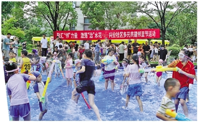 上周末,科技城未来郡小区办起了一场热热闹闹的水上乐园活动。该小区为人才公寓,700余户业主多为大专以上学历的年轻人。社区拟定初步方案后,有业主主动承担酸梅汤、柠檬汁的材料采购及制作,物业负责场地协调与安全保障,业委会承担志愿者招募与秩序维护。