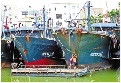 8月13日,广东汕头澄海区渔民固定渔船备战台风。 鉴于今年第11号台风“杨柳”进一步趋向广东沿海,将带来严重风雨浪潮影响。广东省防总已于8月13日13时将防风Ⅲ级应急响应提升至Ⅱ级。 新华社发(姚军 摄)