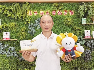 尤田苗收到象征杭州文明的“桂宝”玩偶和桂花点赞卡。