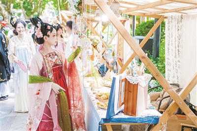 如今的“北关市集”持续迭代升级。硬件上,7月全新亮相的车展式摊位自带储物功能,省去摊主“每日搬货”的繁琐;数量上,主街摊位从50个扩容至56个,“兜妙街”主题市集新增40个摊位,形成“主街逛潮玩、内街品禅意”的循环线路。紧邻香积寺的兜妙街每月举办禅修、中医养生等活动,已带动20多万人次客流,为内街商户引流提升30%。