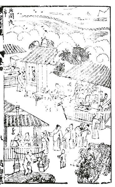 明代杨尔曾《海内奇观》之“北关夜市”图