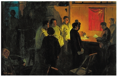 莫朴 《入党宣誓》 布面油画 中国美术学院美术馆藏