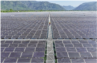 8月19日,从空中俯瞰位于建德市三都镇春江源村的浙江建德中电渔光互补光伏电厂,在近期晴热高温天气的加持下,该电厂的日均光伏发电量超过10万千瓦时。