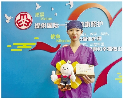 8月19日,第八个中国医师节当天,浙江大学医学院附属第一医院“95后”护士秦瑜钒收到了象征杭州文明的“桂宝”玩偶和桂花点赞卡。