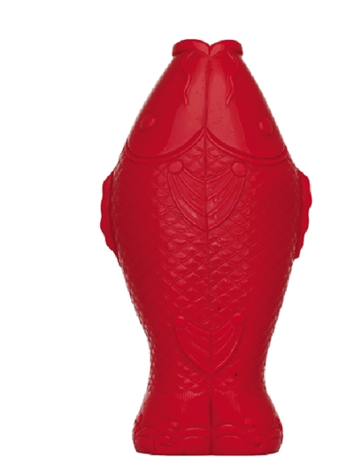 珊瑚红色玻璃双鱼尊