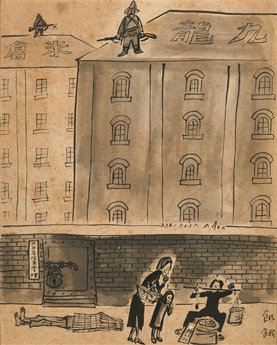 本次展出的叶浅予抗战漫画作品,主要来自他在抗战期间创作的《战时重庆》和《逃出香港》两大系列。《战时重庆》组画以叶浅予在重庆的所见、所闻、所感为题材,融入自己的切身感受而作。《逃出香港》则是叶浅予以自己和妻子戴爱莲从香港逃往内地的经历为题材创作的一组漫画。
