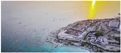 图为新华社记者近日在哈萨克斯坦阿克套拍摄的日落时分的里海海滨风光。中亚气候基金日前发布报告称,世界最大咸水湖里海正面临持续变浅、环境污染和种群崩溃三大危机。
