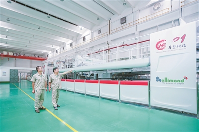 华丰集团生产车间,工作人员正对上浆水线、网部脱水等情况进行检查。企业供图