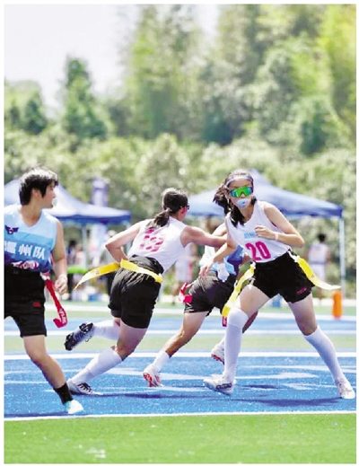 7月末的杭州市第二十一届运动会腰旗橄榄球比赛中,杭州市笕桥中学的四名防守组主力,携手杭州采荷教育集团的进攻组队员,赢得了冠军殊荣。