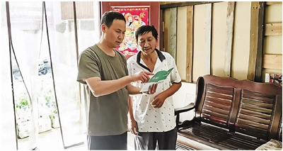 淳安县社会保险服务中心工作人员小程为村民王大叔讲解社保政策。受访者供图