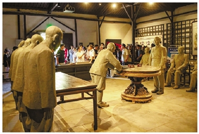 “受降厅”内,1945年9月4日的洽降场景被真实还原:左侧是以国民党第三战区副司令兼前进指挥所主任韩德勤为首的中方代表,右侧则是以日军第133师团参谋长樋泽一治为首的日方投降代表。在中方人员威严的目光注视下,日方垂首躬身,呈缴证明书、日军驻地表、官兵花名册、武器清册等。