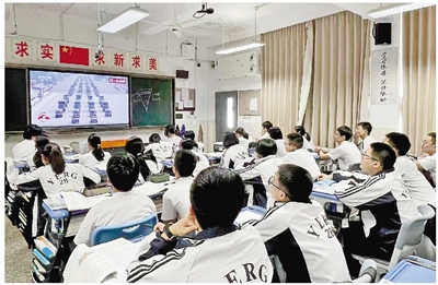 余杭第二高级中学的高一新生在观看阅兵式转播。通讯员 马宁 摄