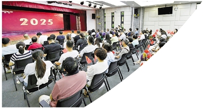 上城区小营街道组织党员干部和社区居民在小营红巷大礼堂集中收看阅兵式实况转播。 通讯员 洪沵 文 记者 李忠 摄