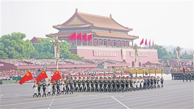 这次阅兵,是对中华民族巨大牺牲的深切缅怀。抗战英模部队的一面面战旗,承载着抗日英雄的牺牲奉献,镌刻着保家卫国的光辉事迹。中国人民抗日战争是一场国家实力极不对称、以半殖民地半封建弱国打败帝国主义强国的正义之战。在那场事关民族危亡的战争中,中国军民伤亡超过3500万人。一个民族用鲜血和生命换来的和平何其沉重、何其珍贵。以阅兵的形式深切缅怀巨大牺牲,牢记由鲜血和生命铸就的中国人民抗日战争的伟大历史,在历史的守望中汲取勇毅前行的力量。
