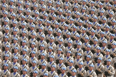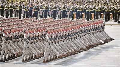 中国人民解放军仪仗方队接受检阅。 本版图片均据新华社