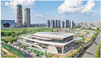 本报讯(通讯员 杭云宣 记者 吴佳妮 文 张之冰 摄)近日,云门公园建设又传好消息,作为先行启动的关键项目——换乘综合体即将璀璨亮相!目前,主体结构、外立面施工均已完成,内部精装和外部铺装绿化进入最后冲刺阶段。