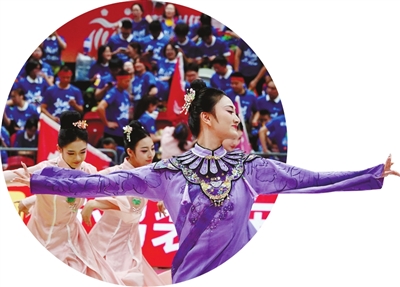 同样是三分钟的节目,在中场休息环节上演的器乐合奏《夜深沉》以及在第三节休息时间推出的群舞《江南四时舞》,均由杭州艺术学校呈现。其中,《夜深沉》原为京剧的经典曲牌,常见于《击鼓骂曹》《霸王别姬》等剧目,衬托祢衡击鼓、虞姬舞剑等关键场景。昨晚,6名乐手通过加花、删简、紧缩、句末填充及变奏等手法,将原曲哀怨悲凉的基调转化为刚劲昂扬的全新曲风。这一改编,强化了节奏感和戏剧张力,极大调动了现场气氛,让赛事的氛围得以延续。