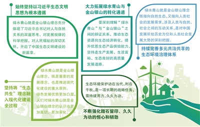绿水青山就是金山银山理念立意高远、内涵丰富,既明确了生态优先、绿色发展的原则底线,又表达了我国在生态文明建设中的坚定意志,同时也指明了生态保护与经济发展辩证统一的发展方向。习近平总书记多次强调环境保护在民生事业中不可替代的重要地位,指出“环境就是民生,青山就是美丽,蓝天也是幸福”“发展经济是为了民生,保护生态环境同样也是为了民生”,体现了人民至上的深厚情怀和责任担当。牢固树立和践行绿水青山就是金山银山理念,要深刻理解“绿水青山”与“金山银山”之间的辩证关系,守好发展和生态两条底线,不断拓展转化通道,推动生态资源向生态经济转化,提升优质生态产品供给能力,坚持走生产发展、生活富裕、生态良好的高质量发展道路。