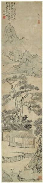 明代吴门画派名家文嘉笔下的《松屋读书图》,不是一幅简单的山水长卷,而是为所有读书人勾勒的“理想治学境”。此画将自然之美与读书之乐融为一体,令人观之忘俗,仿佛置身于清幽宜人的山林之中,感受那份宁静与恬淡。远处青山如黛,被淡淡的云烟笼着,似藏着无尽的深邃;近处古松苍劲,虬曲的枝干撑起一片浓荫,荫下一方屋舍静静伫立,屋内高士正襟危坐,手中书卷摊开,周身的沉静仿佛能隔绝世间所有喧嚣。整幅画没有繁复的色彩,却以简洁的笔墨勾勒出求学最本真的模样——需有“摒除杂念”的定力,方能在知识的天地里沉潜。