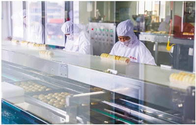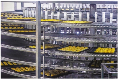 “月饼作为中秋节的特色食品,具有季节性强、适销期短等特点。”市场部经理郑炜介绍,五味和于8月初启动月饼生产,根据今年中秋时间安排,预计生产将持续至9月25日。“9月之前属于平峰期,日产10万个。进入9月后,生产进入高峰,日产40万个,公司启动‘两班倒’模式。”