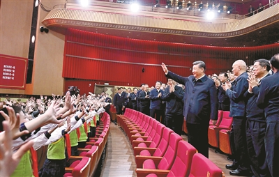 王沪宁、蔡奇、李干杰、何立峰、王小洪、雪克来提·扎克尔、谌贻琴、王东峰和刘振立,在新疆工作过的老同志,以及中央和国家机关有关部门负责同志、中央代表团全体成员一同观看演出。