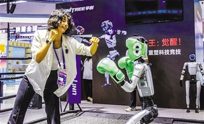“不输专业选手的水准。”在2号馆的“数智未来”展区,记者观看了现场的“明星”宇树人形机器人G1的拳击比赛,忍不住惊叹,“身高”约127厘米、“体重”约35公斤,全身23至43个关节电机,G1在现场打起拳来虎虎生威。