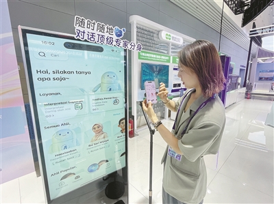 “AI提供的功能不止于此,AI大模型的学习能力很强,我们把省内三甲医院医生的著作、研究报告、线上音频资料等‘喂’给它,它能形成医生的数字分身,为你解读体检报告,提供咨询。”为了借助数贸会把产品推向国外市场,智诊科技还展示了阿拉伯语、印尼语等版本。