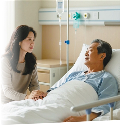我们请了24小时护工照料。一周后,医生担心父亲吃东西误吸到肺部,建议鼻饲。