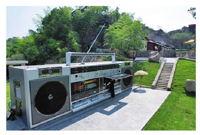 这片山谷究竟有何魅力?记者沿着平整的石子路蜿蜒而上,眼前豁然开朗,一片绿意盎然的大草坪,中央是一台“超大复古收音机”。走近细看,原来是一座造型酷似收音机的咖啡吧,不少年轻人正在此拍照打卡。