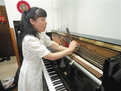 对三位盲人调律师的技艺,郑女士竖起大拇指。“我都看傻了!他们真的很棒,我很佩服他们。”郑女士说,这架钢琴以前都是外孙在弹,最近,她自己也想学习弹钢琴,但觉得太难了。“从这几个年轻人身上,我看到了面对困难的勇气,我要向他们学习!”